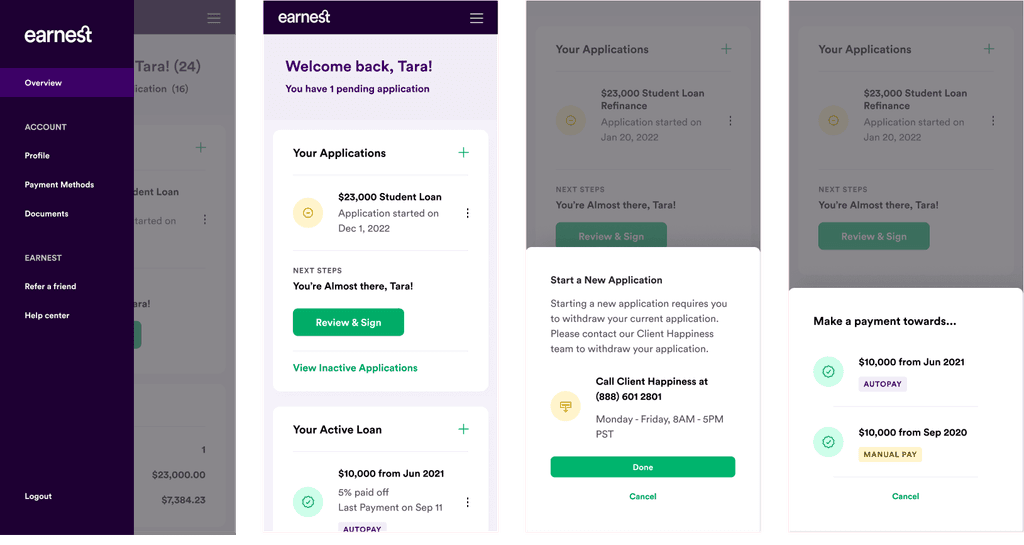 Earnest's customer service team was getting overburdened with a heavy number of calls from current customers regarding simple tasks like paying monthly payments, obtaining tax documents, and checking payment status.