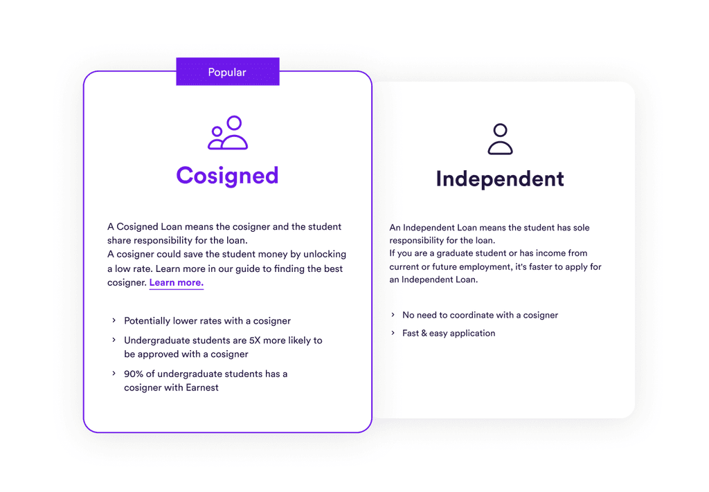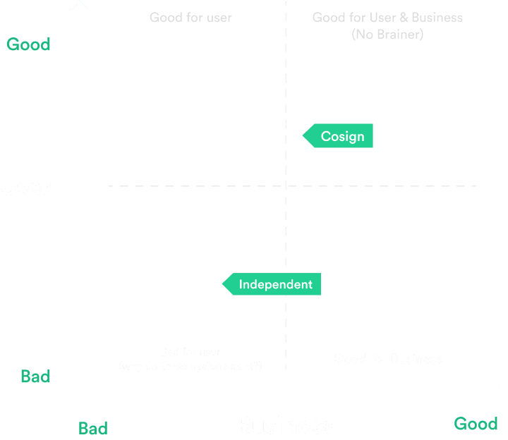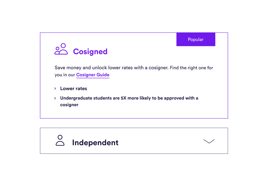Copy seems to nudge the user towards independent while the popular tag nudges cosigned which again causes unnecessary friction.