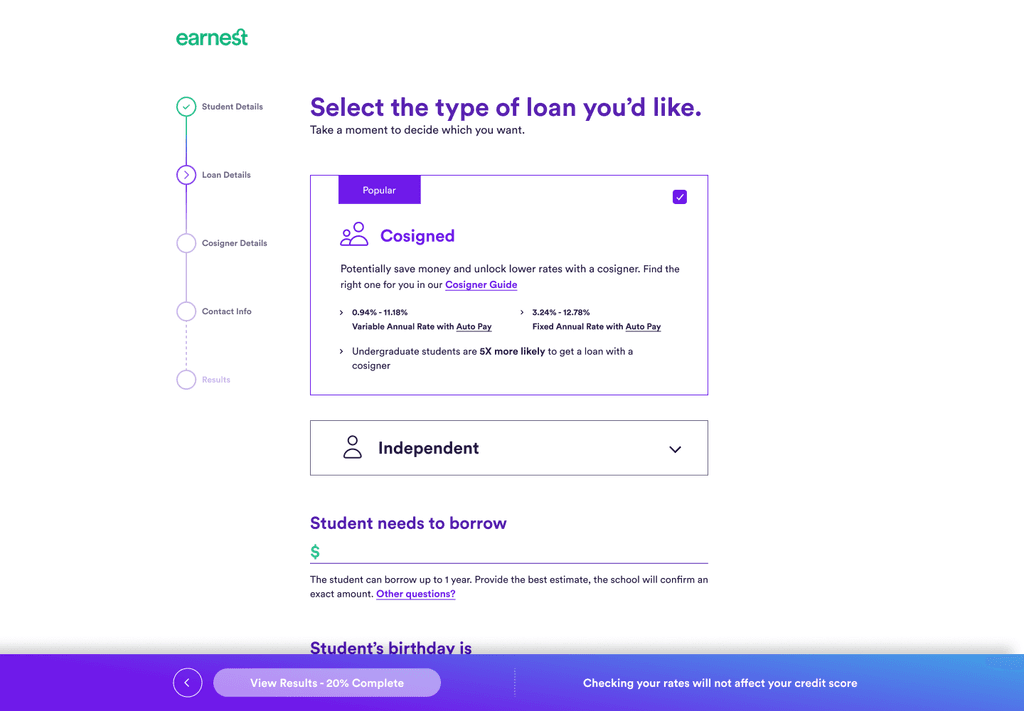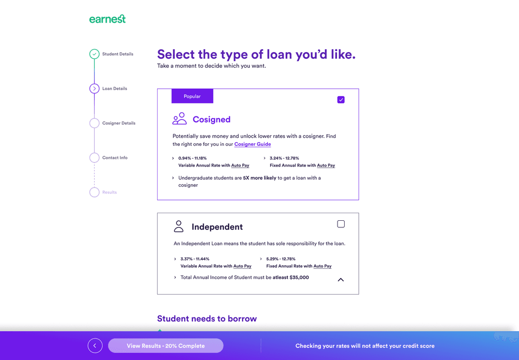 As undergraduates, users would love to take the “Fast and Easy Application with no need to coordinate with a cosigner” and 99% of the time will end up with no rates. While some users may just want to try it out for the sake of going through the app some may get discouraged from earnest and seek other options.